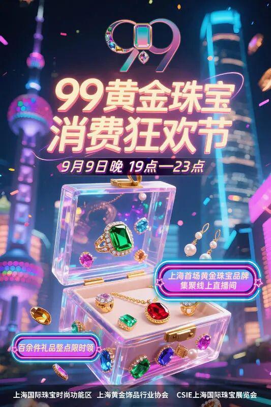 作为上海黄金珠宝产业应对新零售变革的重要创新举措,“99黄金珠宝消费狂欢节”巧妙借力“99”这一象征黄金纯度的数字意象,契合金秋消费旺季,通过“线上直播+线下展会”双轮驱动,不仅有效激活市场潜力,更积极助推上海国际珠宝时尚功能区的能级提升与品牌集聚。