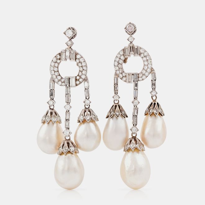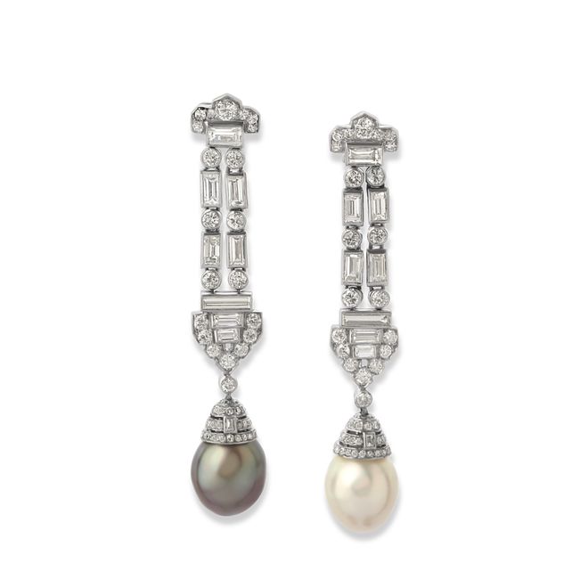 一对镶嵌天然珍珠与钻石的艺术装饰风格耳环 © Morelle Davidson