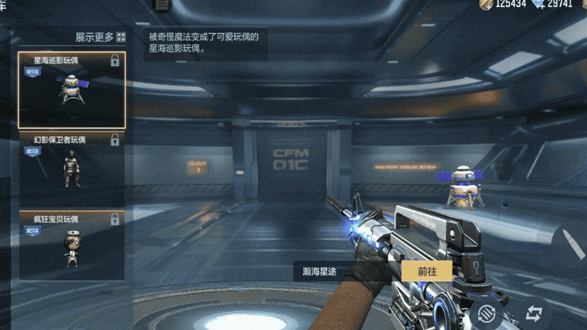 而星海巡影玩偶则会静静的漂浮在枪身,磁悬浮架构的支脚规规矩矩,太阳能翼板如猫耳般慵懒摆动充能,跟随人物的呼吸一起一浮,设计的非常灵动,在众多玩偶里也算是独一份了。