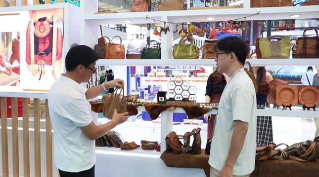 在文创展区内,各类纯手工皮雕等工艺品吸引不少目光。“我们带来了皮包、首饰、头饰等文创产品,均为纯手工制作,融入了蒙古族游牧文化与艺术风格。希望借展会让更多人看见、了解通辽特色。”通辽市玉娟民族艺术品有限公司负责人王馨介绍。